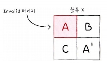여기서 Free 상태인 빈 페이지에 A'가 저장돼 Valid 상태가 된다.