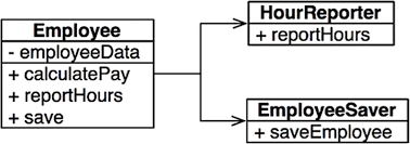위 Employee 클래스는 세 가지 메서드 calulatePay(), reportHours(), save()를 가진다.