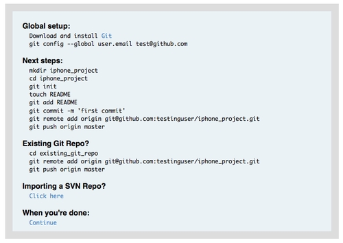 $ git remote add origin [email protected]:testinguser/iphone_project.git