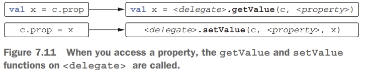 >>> foo.p = newValue //프로퍼티 값을 delegate.setValue(…, newValue)를 호출해 바꿈