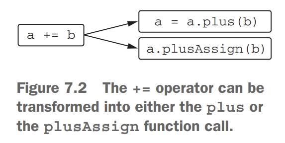 하지만 일반적으로는 새로운 클래스를 만드는 것이 좋다. 즉, 오직 plusAssign와 비슷한 다른 연산을 지원하는 변경 가능한 클래스를 만들면 된다.