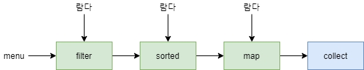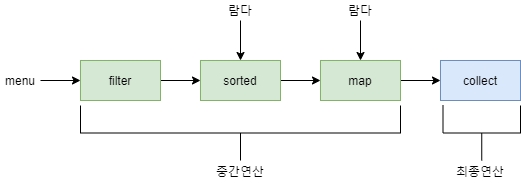 menu.stream() // ๋ฉ๋ด์์ ์คํธ๋ฆผ์ ์ป๋๋ค.