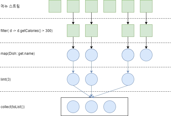 .filter(d -> d.getCalories() > 300) // ํ์ดํ๋ผ์ธ ์ฐ์ฐ ๋ง๋ค๊ธฐ(๊ณ ์นผ๋ก๋ฆฌ ์๋ฆฌ ํํฐ๋ง)