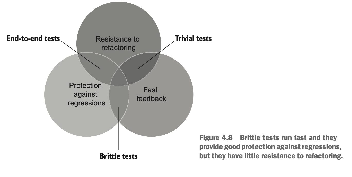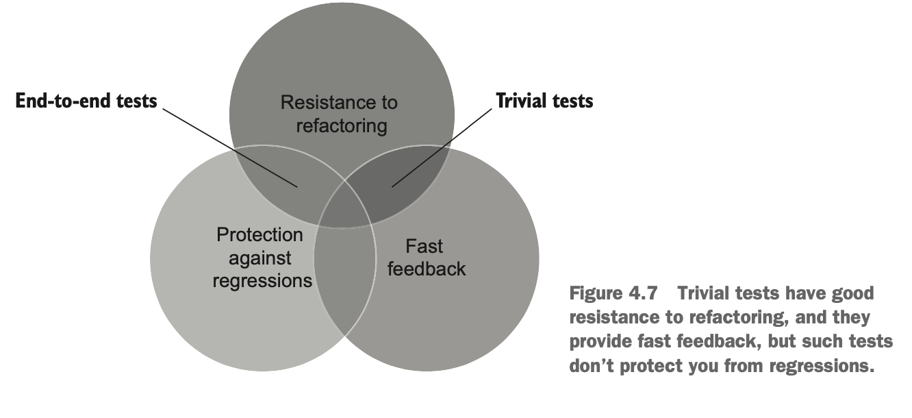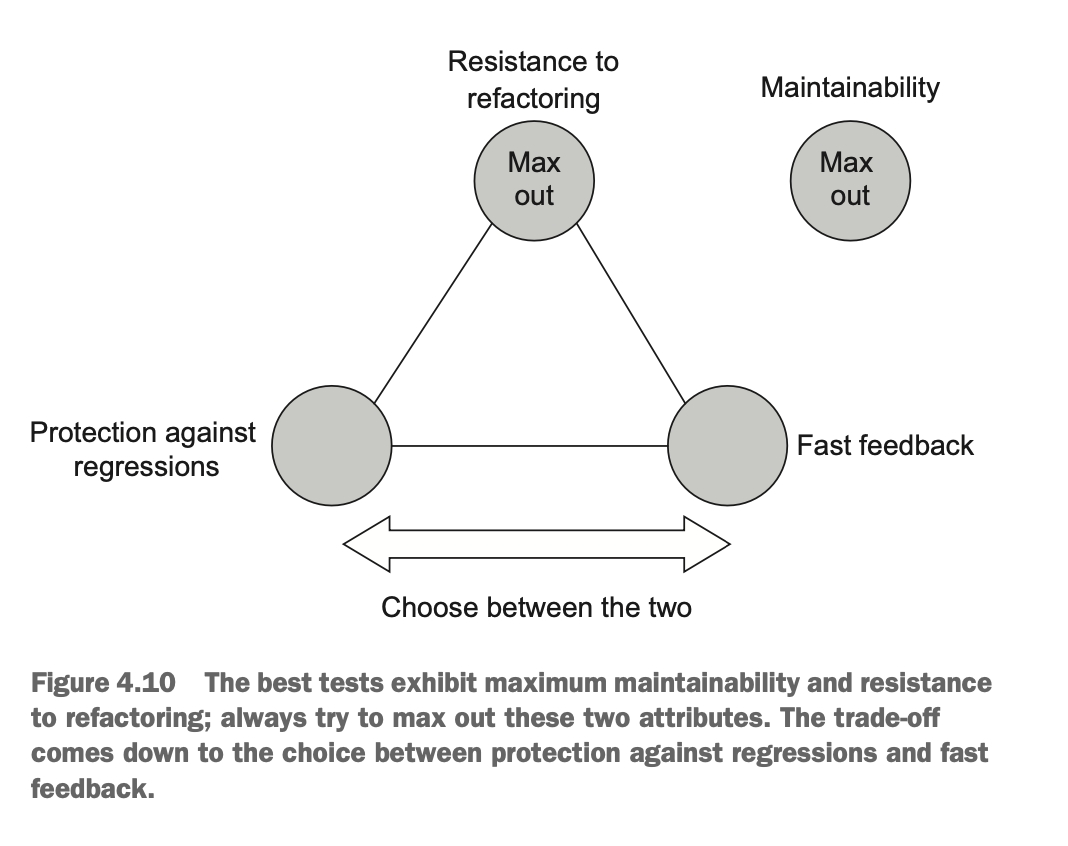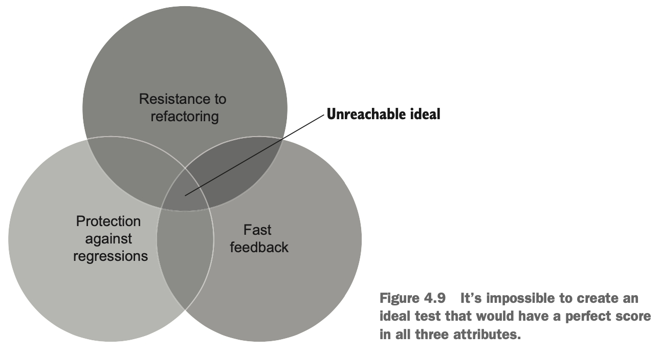 3가지 특성 회귀 방지, 리팩터링 내성, 빠른 피드백은 상호 배타적이기 때문이다.