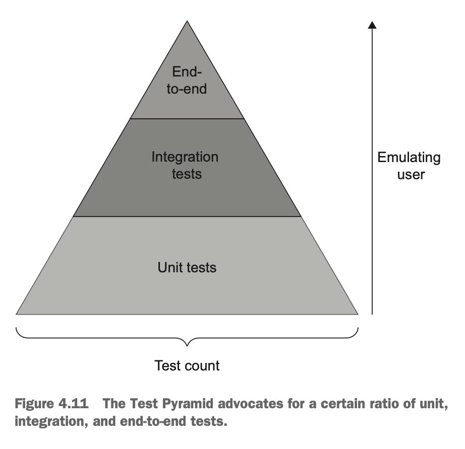 네 번째 특성인 유지 보수성은 엔드 투 엔드 테스트를 제외하고 다른 세가지 특성과 상관관계까 없다. 엔드 투 엔드 테스트는 관련된 모든 의존성을 설정해야 하므로 일반적으로 크기가 더 크다.