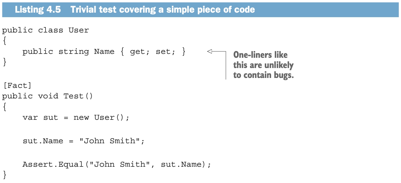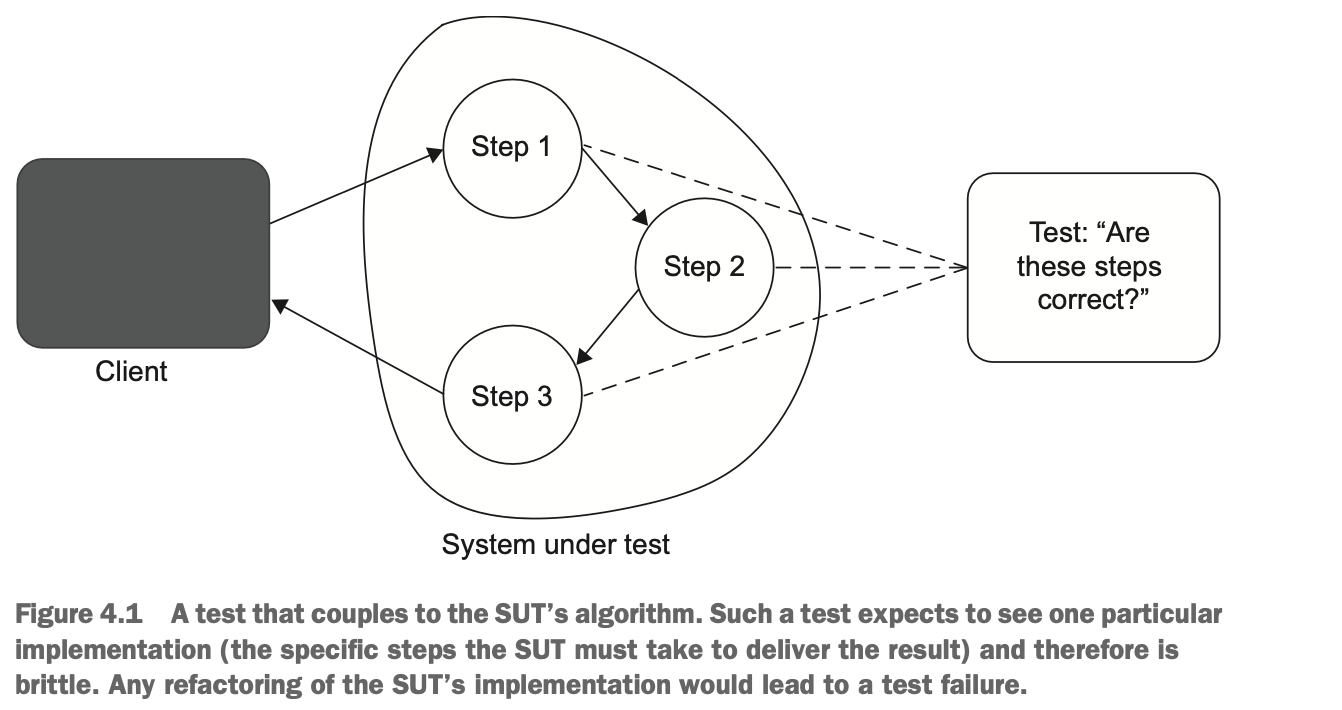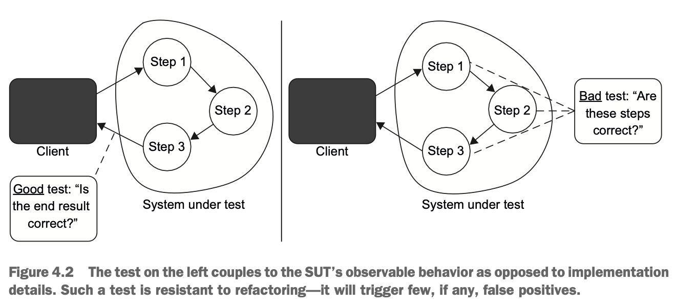 따라서 리팩토링을하게되면 테스트는 매번 실패하게 된다. 이처럼 SUT의 세부 사항과 결합된 테스트는 리팩터링 내성이 없다.