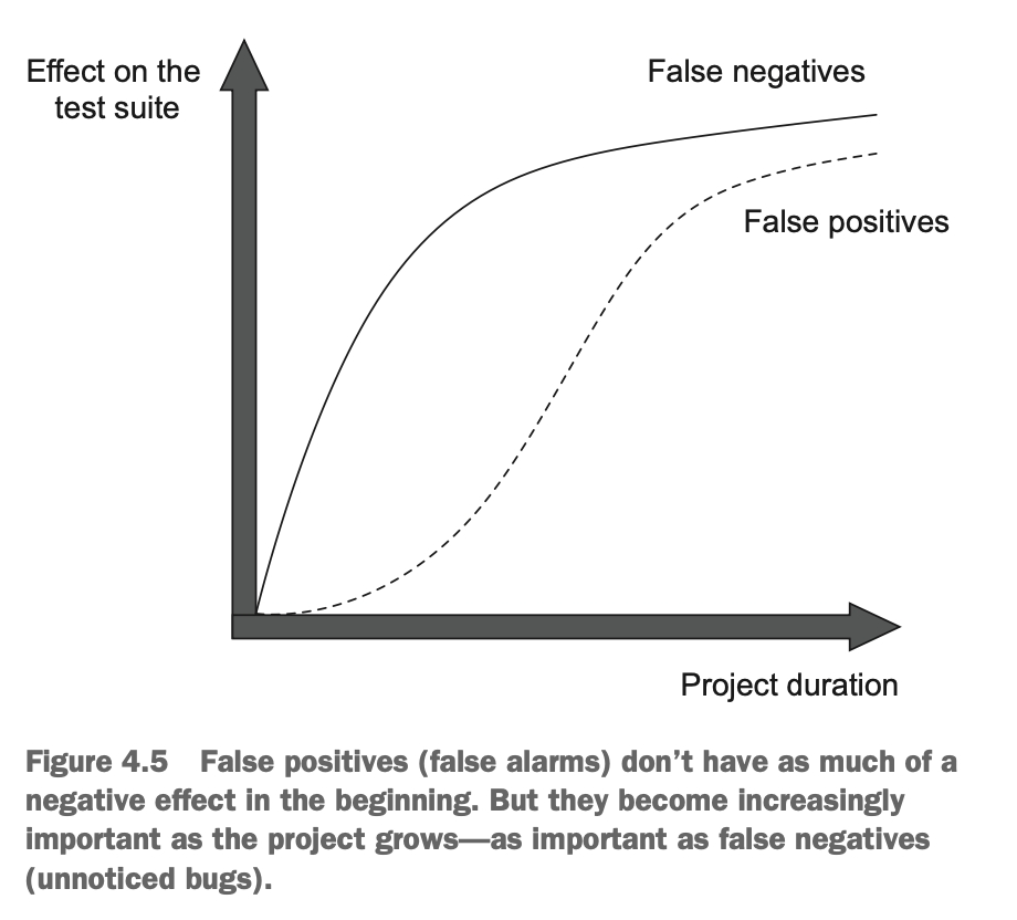 거짓 양성은 단기적으로 거짓 음성만큼 나쁘지는 않다. 즉, 프로젝트 초반에는 크게 신경쓰지 않아도 될 수 있다. 하지만 시간이 지나면서 점차 중요해진다.