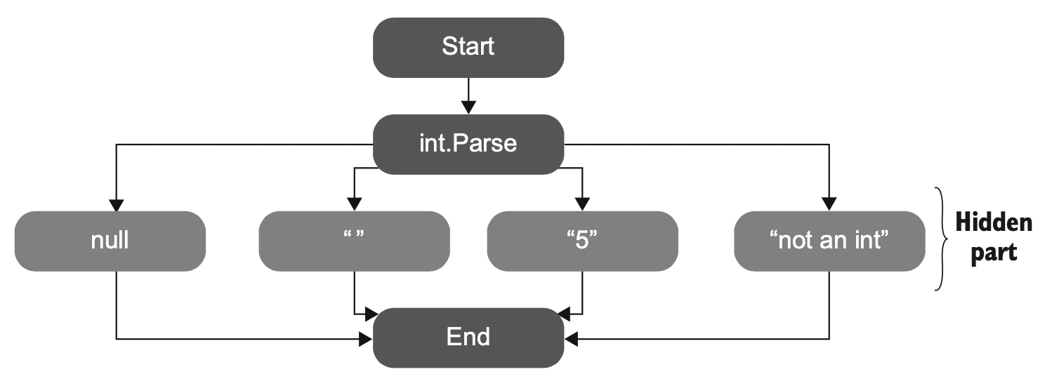 위의 코드를 보면 분기 커버리지가 100%인 것을 알 수 있다. 하지만 int.parse 메서드는 .NET 프레임워크에서 제공하는 외부 라이브러리 코드이다.