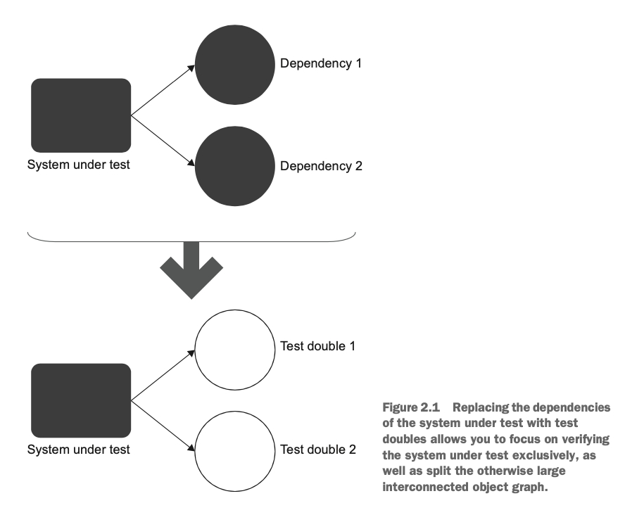즉, 하나의 클래스가 다른 클래스에 의존성을 갖고 있으면 그 의존성을 테스트 대역(test double)으로 대체하여 테스트하는 것을 의미한다.