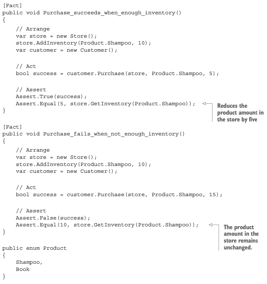하지만 Product와 숫자 5도 의존성이지만 협력자는 아니다. 값 또는 값 객체로 분류된다. 아래 코드에서 의존성은 3개이고 하나(store)는 협력자이고, 나머지 두개(Product.Shampoo, 5)는 아니다.