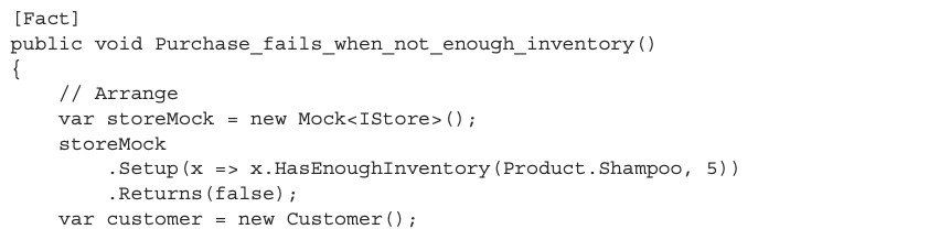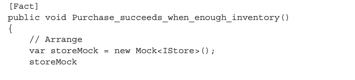 준비 단계에서 테스트는 Store의 실제 인스턴스를 생성하지 않고 Moq의 내장 클래스인 Mock<T>