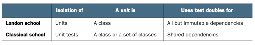 런던파와 고전파로 나눠진 원인은 격리 특성을 바라보는 관점 차이 때문이었다. 런던파에서는 협력자를 격리의 대상으로 보지만, 고전파에서는 단위 테스트끼리 격리해야한다고 보고 있다.