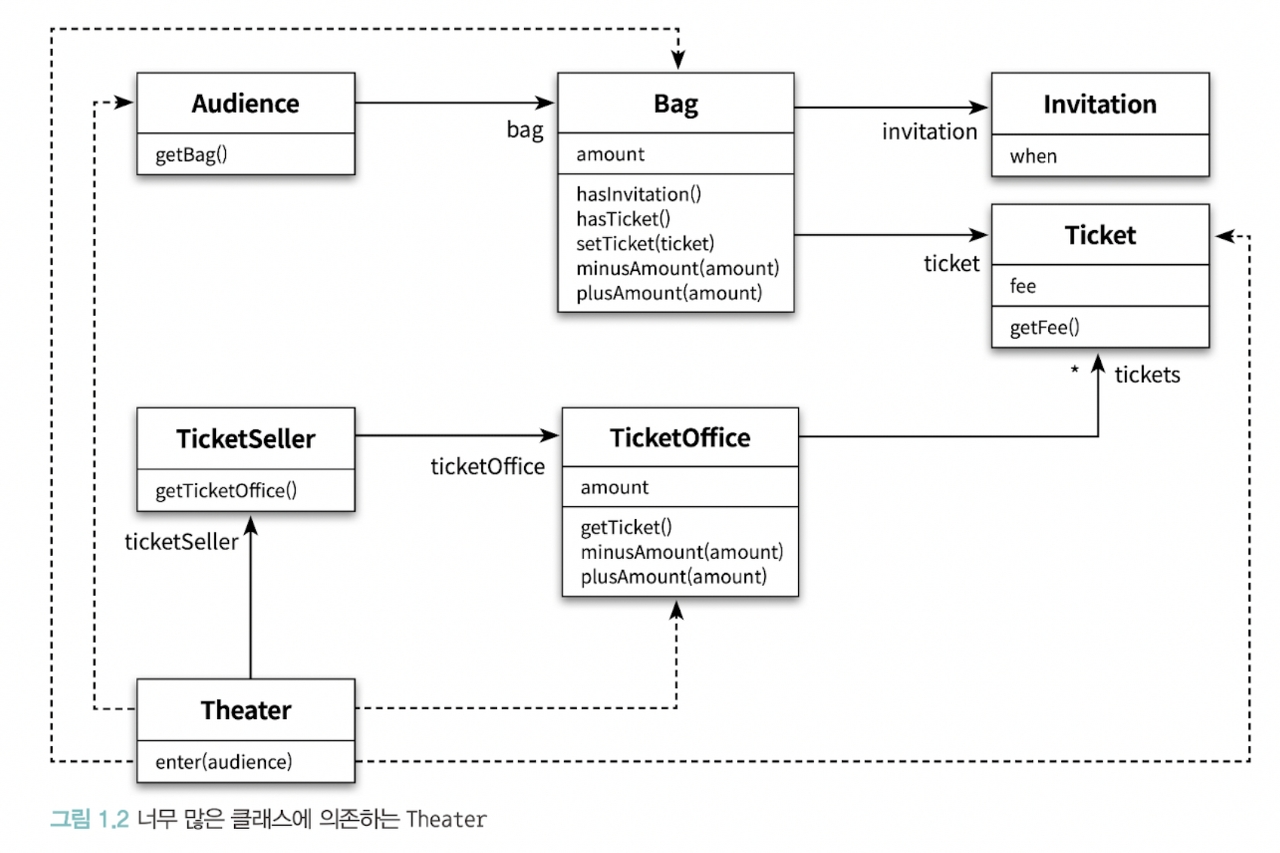 가장 큰 문제는 Audience 와 TicketSeller를 변경할 경우 Theater를 함께 변경해야한다는 사실이다.