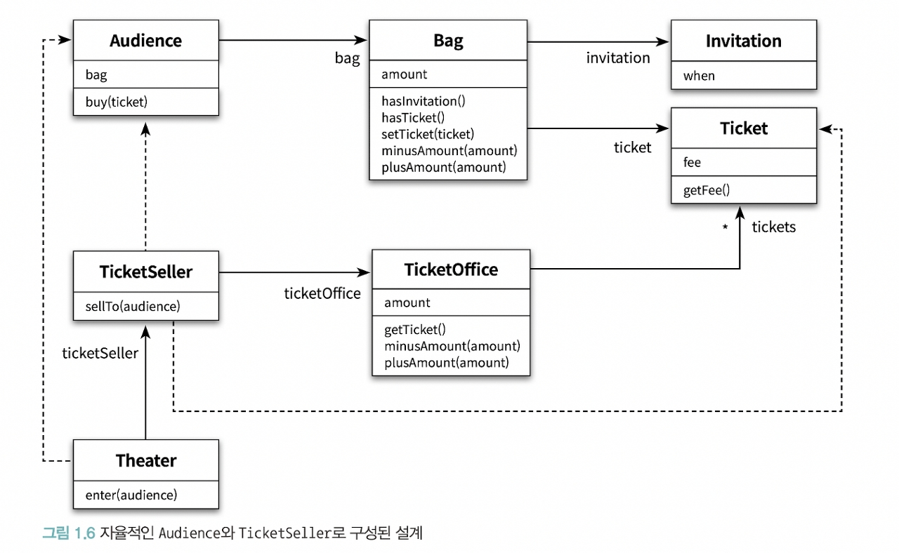 TicketSeller는 ticketOffice에서 티켓을 꺼내거나 판매 요금을 적립하는 일을 스스로 수행할수밖에 없다.