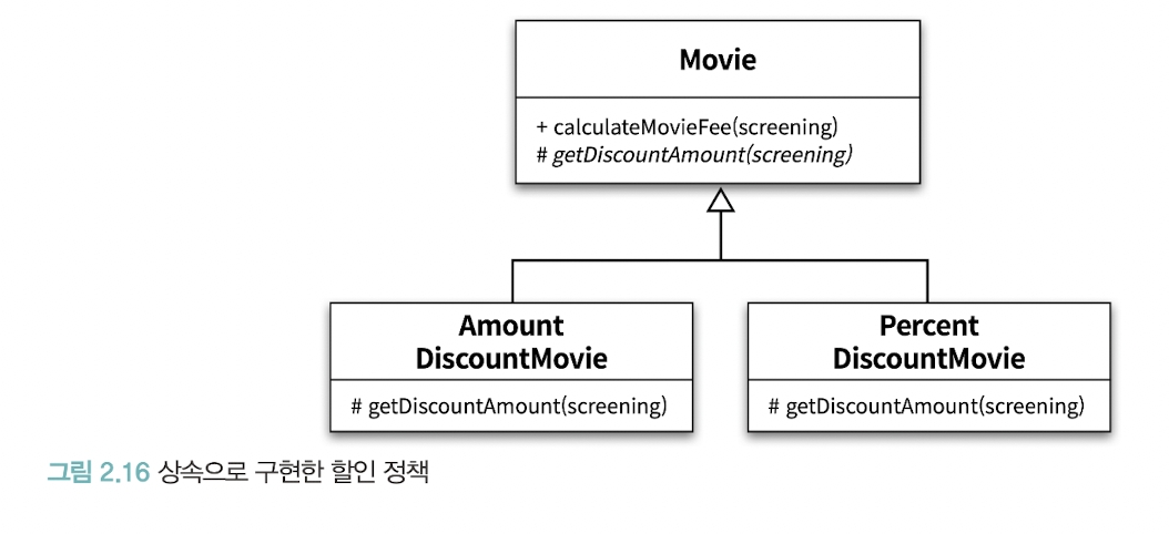 문제는 영화 요금을 계산하기 위해서는 abstarc class가 아닌!, AmountDiscountPolicy, PercentDiscountPolicy 와 같은 인스턴스에 의존해야 한다.