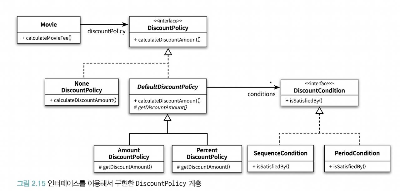 Movie입장에서는 자신과 협력하는 객체가 어떤 클래스의 인스턴스인지가 중요한것이 아니라, calculateDiscountAmount라는 메시지를 수신할수 있다는 사실이 중요하다.