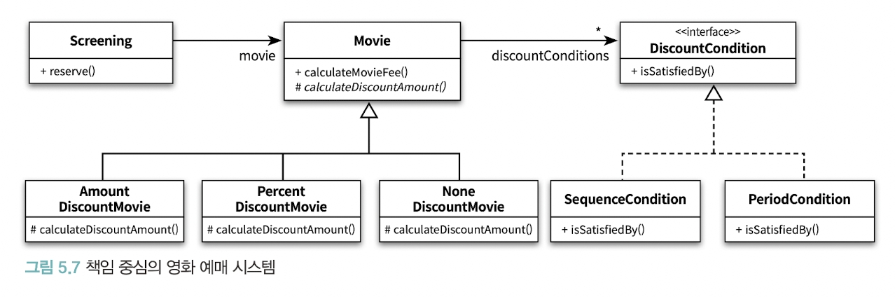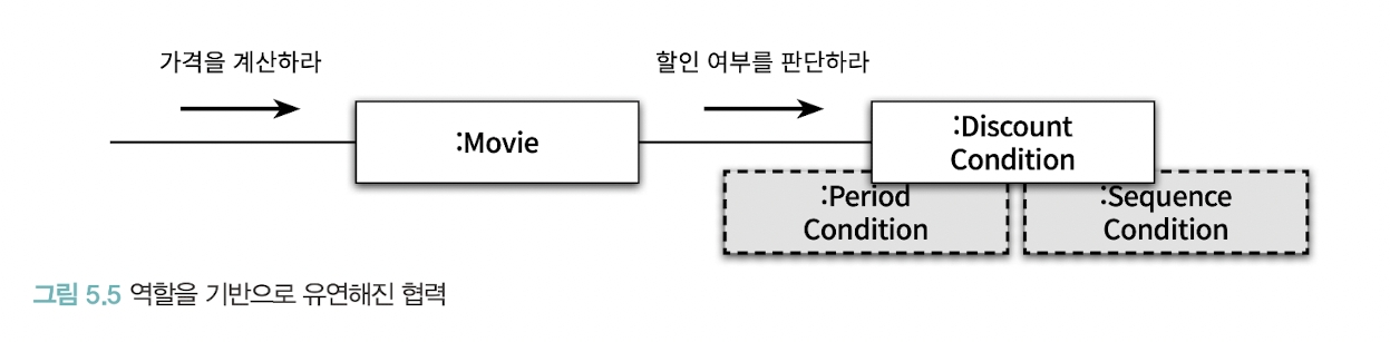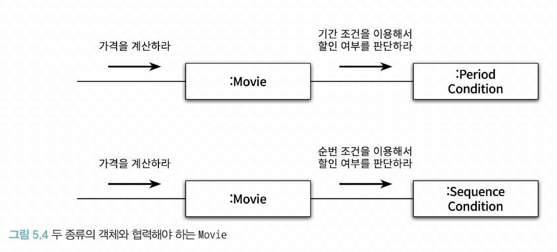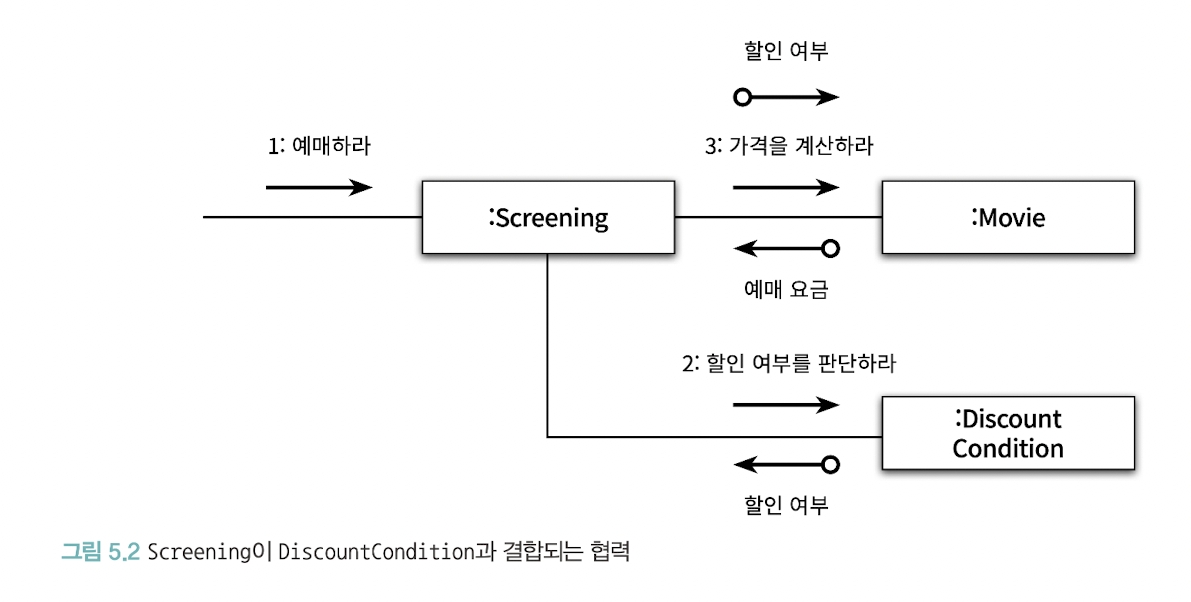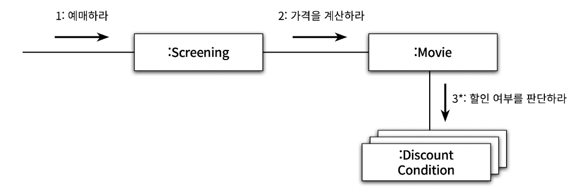 만약 Screening과 DiscountCondition이 협력하게 되면 Screening은 영화 요금 계산과 관련된 책임 일부를 떠안아야 할 것이다.