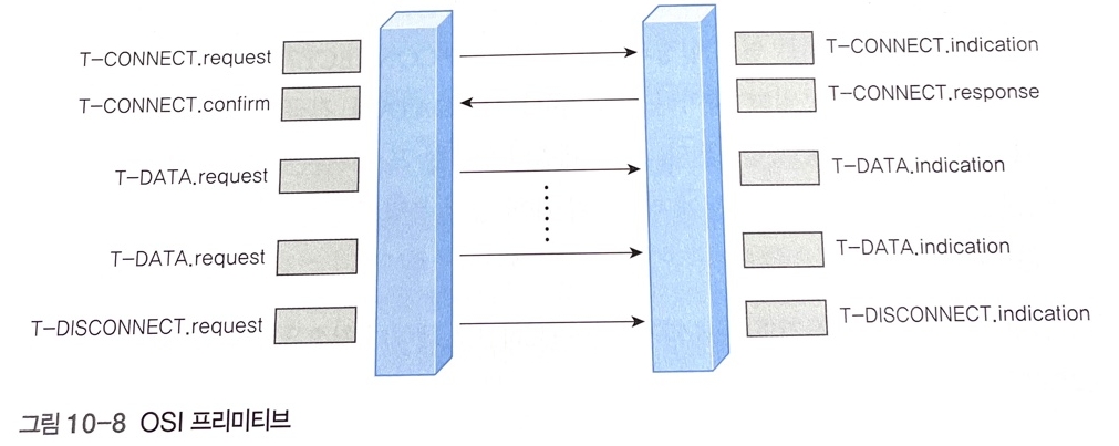 -> 서비스 프리미티브를 이용한 연결형 서비스의 동작 과정으로