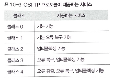 - OSI에서 TP(Transport Protocol)는 다섯 개의 클래스로 서비스를 분류하여 지원한다.