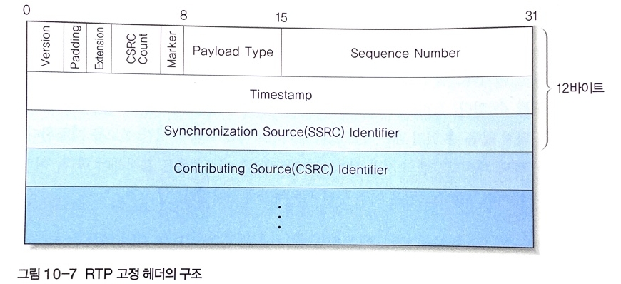 - RTP(Real Time Protocol) : UDP에 순서 번호 기능을 추가한 방식