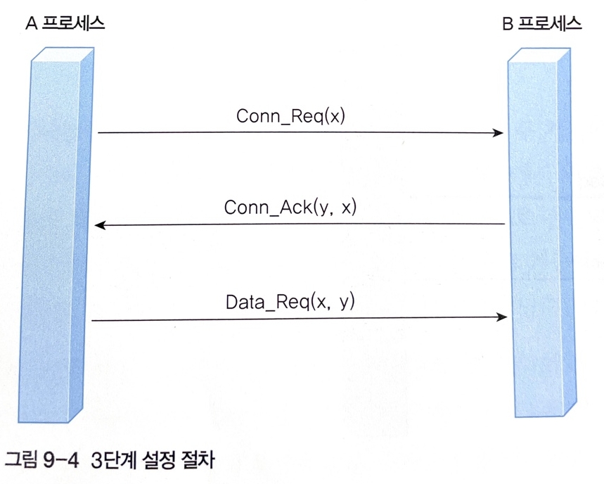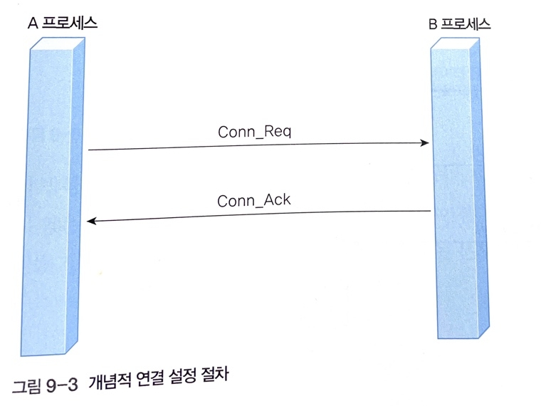 - 프로세스의 연결 설정 요구인 Conn_Req와 상대편 프로세스에서 연결 수락을 의미하는 Conn_Ack의 회신으로 완료된다.