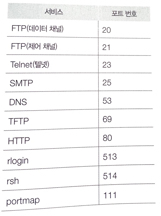 인터넷 환경에서 많이 사용하는 포트 번호를 Well-Known 포트라 하며 자주 사용하는 응용 서비스는 모두 고정된 포트 번호를 사용한다.