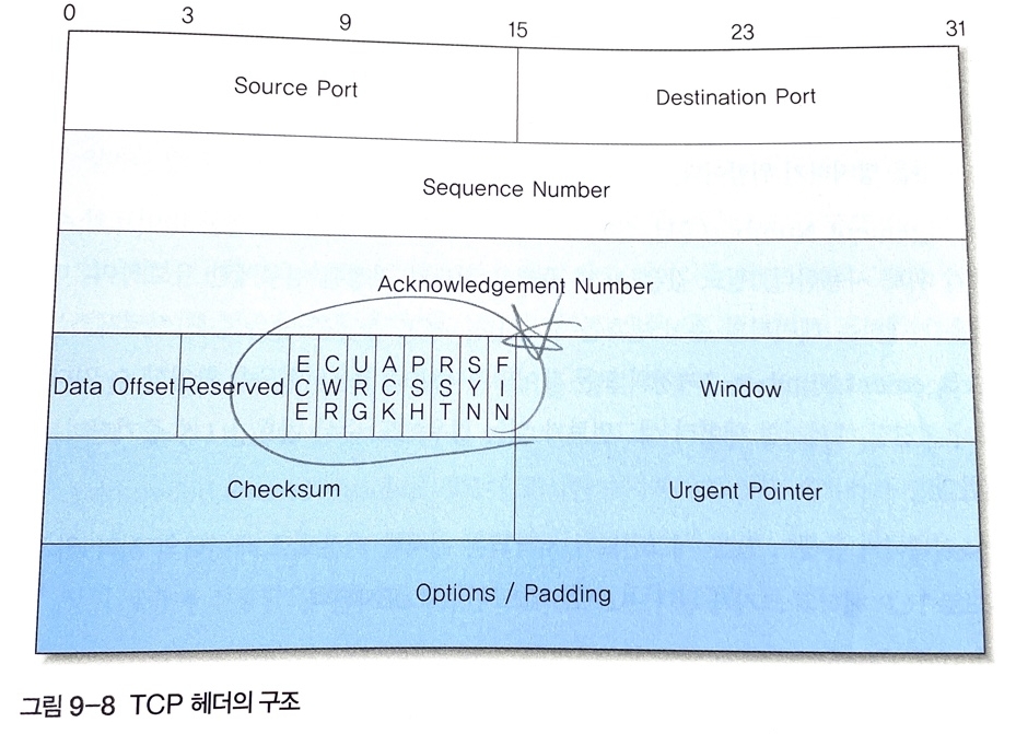 - TCP 헤더는 중간에 위치한 여덟 개의 플래그 비트를 비롯해 제법 많은 필드를 사용하므로 데이터의 전송 과정이 UDP보다 복잡하다.