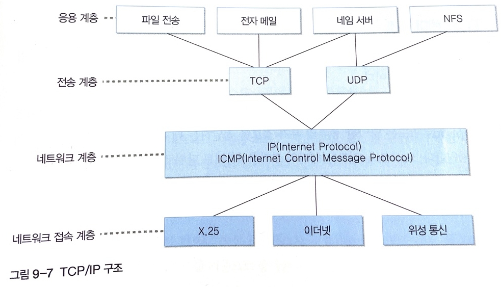 -> TCP/IP 프로토콜의 계층적 구조로 네트워크 계층의 기능을 제공하는 프로토콜은 IP이며, 프로토콜 위에서 실행되는 전송 계층 프로토콜은 서비스의 유형에 따라 TCP(연결형 서비스를 지원하는 프로토콜)와 UDP(비연결형 서비스를 지원하는 프로토콜)가 있다.