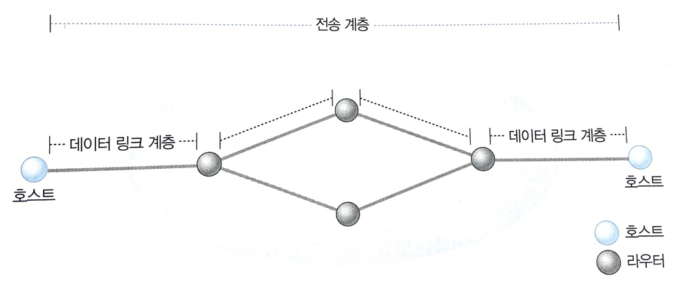 -전송 계층 프로토콜은 오류제어, 흐름 제어, 데이터 순서화 등의 기능 면에서 데이터 링크 계층과 유사하지만 2 계층은 물리적인 전송 선로로 직접 연결된 두 물리적 호스트 사이의 데이터 전송을 담당하고 / 전송 계층은 네트워크 끝단에 위치하는 통신 주체가 중간의 논리적인 선로(라우터로 연결된 컴퓨터 네트워크)를 통해 데이터를 주고받는다.