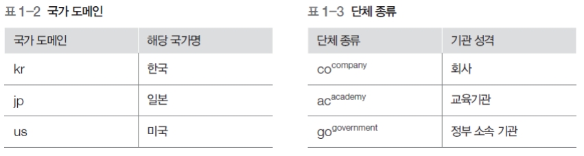 - 호스트 이름 구조 : <호스트>.<단체 이름>.<단체 종류>.<국가 도메인> ex) zebra.korea.co.kr