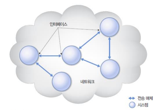 인터페이스 : 시스템과 전송 매체의 연결 지점에 대한 약속 ex) GUI, HCI, API, NAI 등