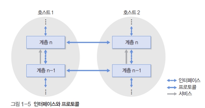 2) 인터페이스 : 같은 호스트에 위치한 상하위 계층 사이의 규칙