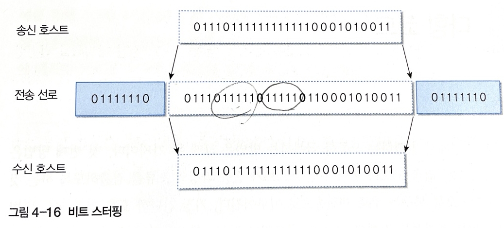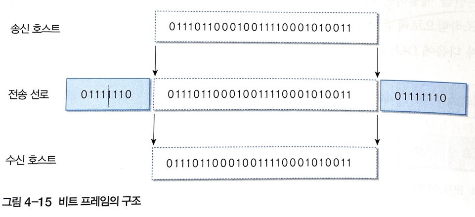문자 프레임 방식에서는 DLE 패턴이 내용에 나타날 가능성이 있는 것처럼 플래그와 동일한 비트 패턴을 포함할 수 있어 적당히 조작하는 과정이 필요하다.
