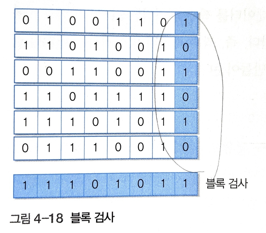 - 짝수 개의 비트에서 오류가 발생하면 오류가 검출되지 않는 문제가 있어 개선된 것이 블록 검사다.