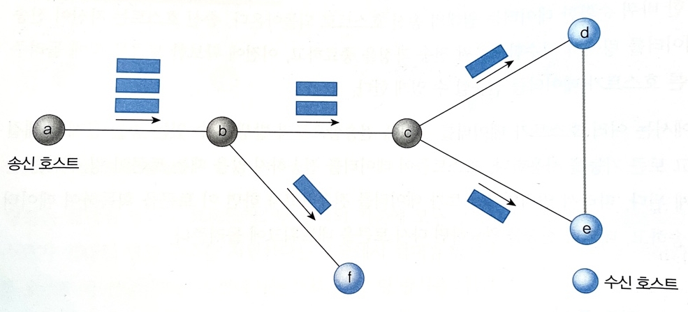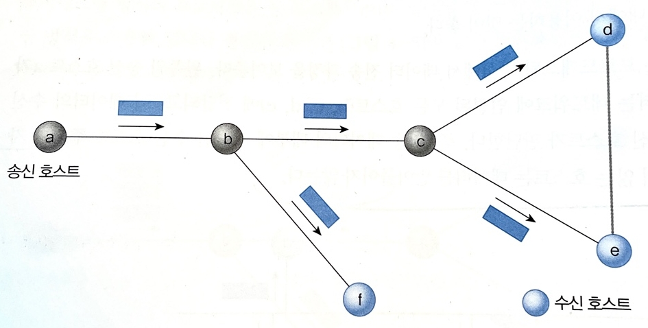 -> a가 다수의 수신 호스트(d, e, f)에 데이터를 전송하려면 각 수신 호스트와 개별적으로 연결을 설정해야 한다.(3개의