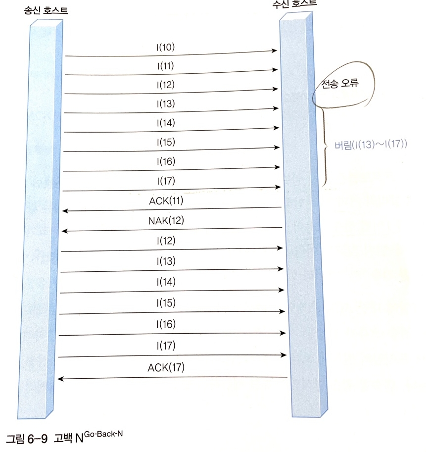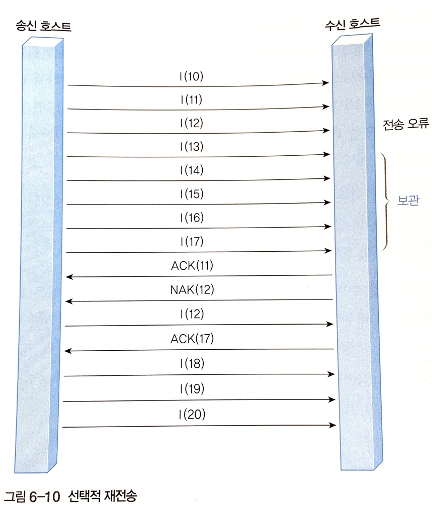 - 만약 프로토콜에서 NAK 프레임을 사용하지 않고 ACK 프레임만으로 작성하면 송신 호스트가 12번 프레임의 긍정 응답 프레임을 받을 수 없어 타임아웃 과정에 의해 재전송을 거친다.