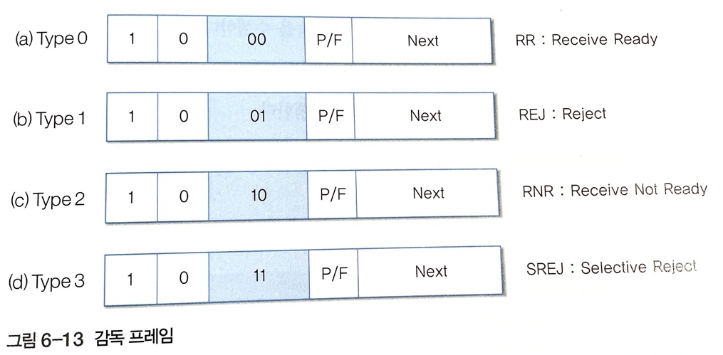 - 전송 오류를 해결하는 과정에서 사용하는 프레임으로 정보프레임, 긍정 응답 프레임, 부정 응답 프레임