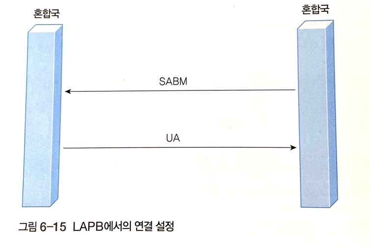 -> 비동기 균형 모드의 연결을 설정하기 위해 오른쪽 호스트가 왼쪽 호스트에 SABM 명령을 전송한 경우로 UA응답을 전송함으로써 2 계층의 연결 설정 완료.