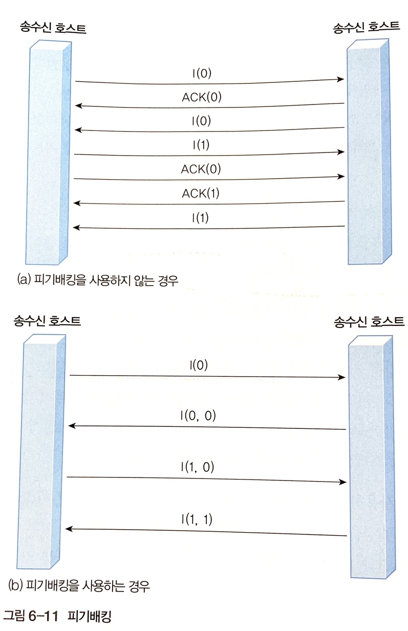 : 응답 프레임의 전송 횟수를 줄이는 효과로 전송 효율을 높이는 것으로 정보 프레임의 구조를 적당히 조정해 재정의하면 정보 프레임을 전송하면서 응답 기능까지 함께 수행할 수 있다.