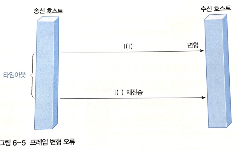 ->프레임 변형 오류에도 동일하게 적용된다. NAK 프레임이 정의되지 않아 타임아웃 기능에 의해 복구 진행