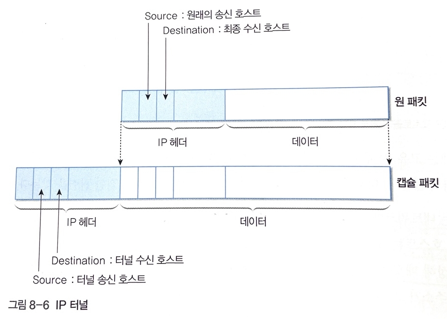 터널 구간을 지나는 과정에서 라우팅 처리가 필요한데 여기서 IP 프로토콜을 사용하며 패킷을 데이터로 취급하는 새로운 형태의 IP 캡슐 패킷이 구성되어 전달된다.