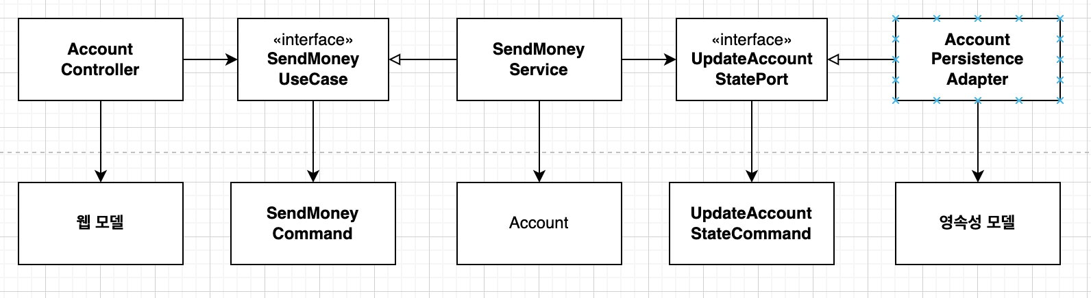 각 연산이 전용 모델을 필요로 하기 떄문에 웹 어댑터와 애플리케이션 계층 각각이 자신의 전용 모델을 각 연산을 실행하는 데 필요한 모델로 매핑한다.