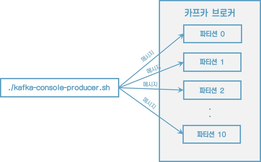 메시지 키 없이 메시지 값만 보내도록 하자. 메시지 키는 자바의 null로 기본 설정되어 브로커로 전송된다.